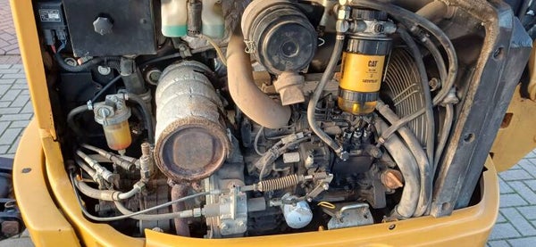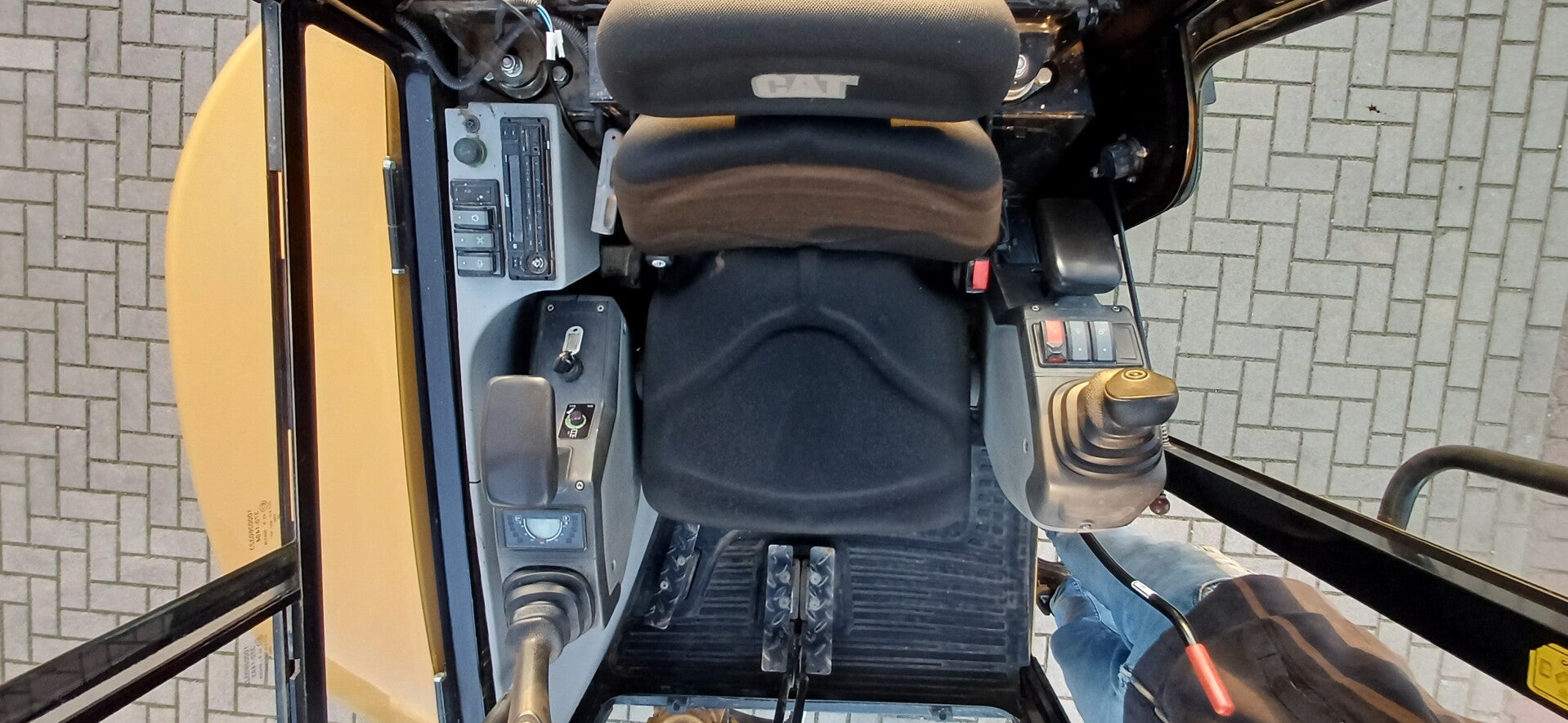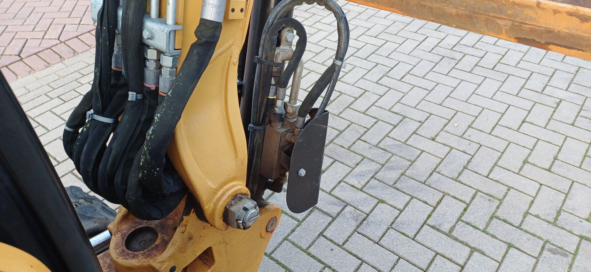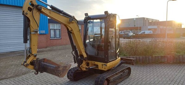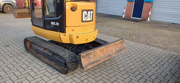 Een gebruikte Caterpillar 302.7 CR uitgerust met:Hydraulische snelwissel CW05Bakken en rubberflap in overleg